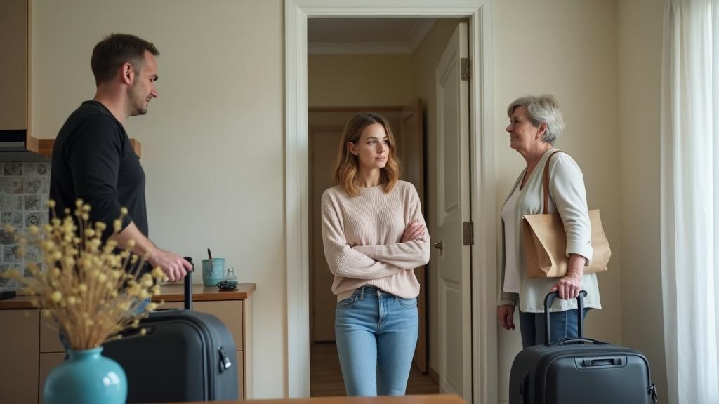 «Убирайся вон!» — эти слова, брошенные мне в лицо человеком, с которым я прожила пятнадцать лет, разнеслись по подъезду, словно звонкая пощёчина. Я стояла на пороге своей — теперь уже официально своей — квартиры и не могла поверить глазам: Богдан, мой бывший муж, которого я не видела почти полгода, стоял на лестничной площадке с двумя огромными чемоданами. За его спиной маячила Ганна — его мать, державшая в морщинистых пальцах пакеты из супермаркета.