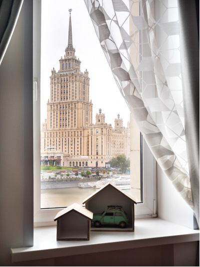 Максим Виторган: «Для меня едва ли не самое ценное в этой квартире — это виды. Например, из кухни на родной двор. Конечно, он тоже сильно изменился, но хотя бы спортивная площадка, где мы играли на квас в футбол, осталась той же. Вообще, эта квартира меня с детства сильно разбаловала: шикарный вид на гостиницу “Украина”, на реку. Теперь вид из окна — очень важный для меня момент при выборе жилья.