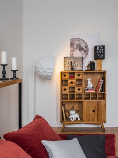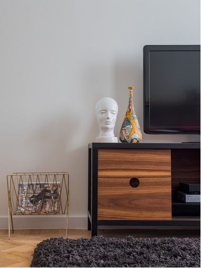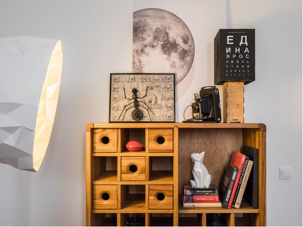 Ксения Собчак: «Новая история квартиры закрутилась вокруг комода, который я увидела в Instagram. Русский дизайнер, ручная работа, невероятного возраста дубы из Ижевска, которые 16 лет сушили на подворье одного из местных мастеров — обожаю такие вещи с историей. А еще это комод из коллекции в духе 1950-х, то есть времен постройки дома. Мне показалось это созвучным атмосфере семейной квартиры».