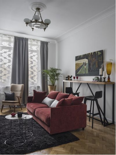 Максим Виторган: «Сложности на этапе ремонта? Да, были! Все длилось очень, очень долго. Строили в сталинские времена основательно, надолго, но уж очень неровно. Выпрямить стены в этой квартире — практически неподъемная задача. Мы останавливали ремонт на какое-то время, потом начинали заново: по штукатурке снова шли трещины. Все было непросто».