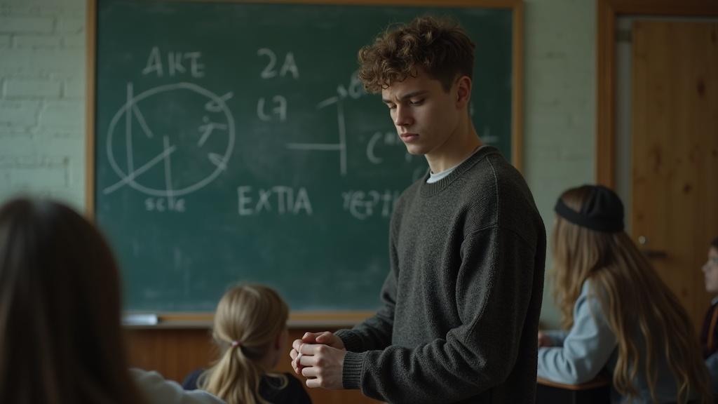 Максим подошёл к доске и взял мел. Его пальцы были тонкими и чуть дрожали от напряжения. Он начал рисовать схему без слов и не поднимая взгляда на одноклассников. Линии ложились аккуратно, даже изящно. Ещё в сентябре я обратил внимание: когда он впервые вышел к доске, руки дрожали, голос срывался — а схема получилась безупречной. Будто внутри него жил художник, просыпающийся только тогда, когда никто не смотрит.