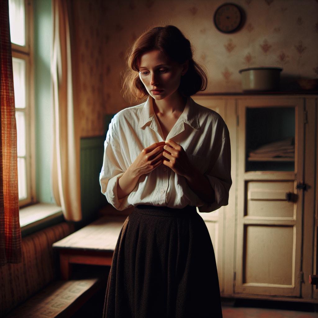Её внешность была скромной, но притягательной: нежные черты лица, светлые волосы и глаза, в которых всегда скрывалась легкая грусть.