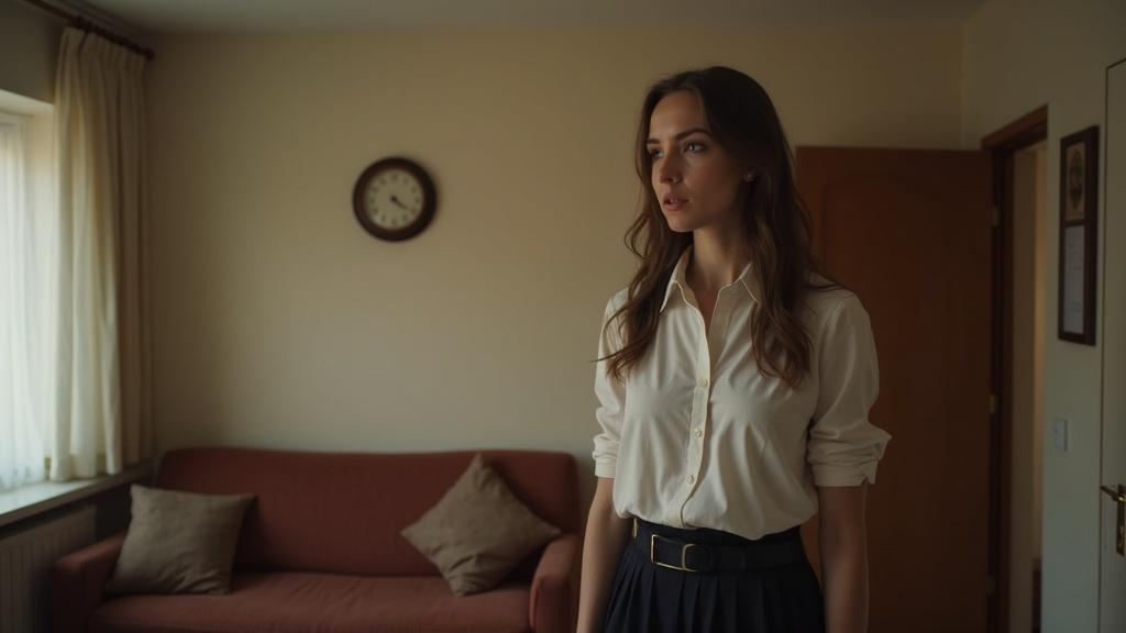 Его взгляд был внимательным и слегка насмешливым. — Я… я просто убираюсь, — быстро ответила она, опуская глаза. — Вижу, — спокойно сказал он. — Не волнуйтесь.