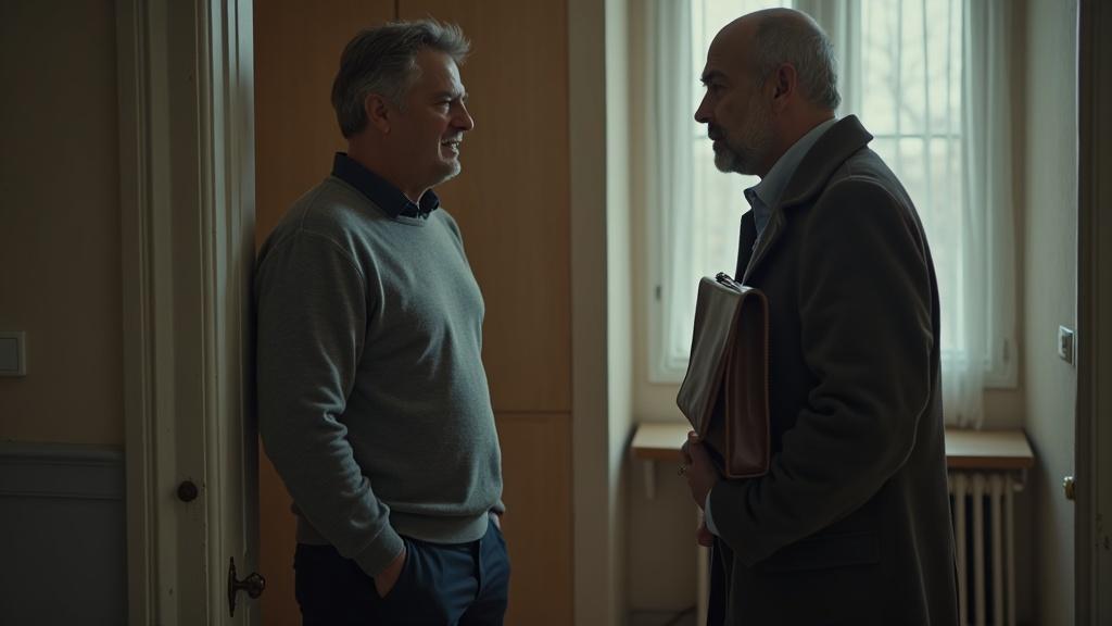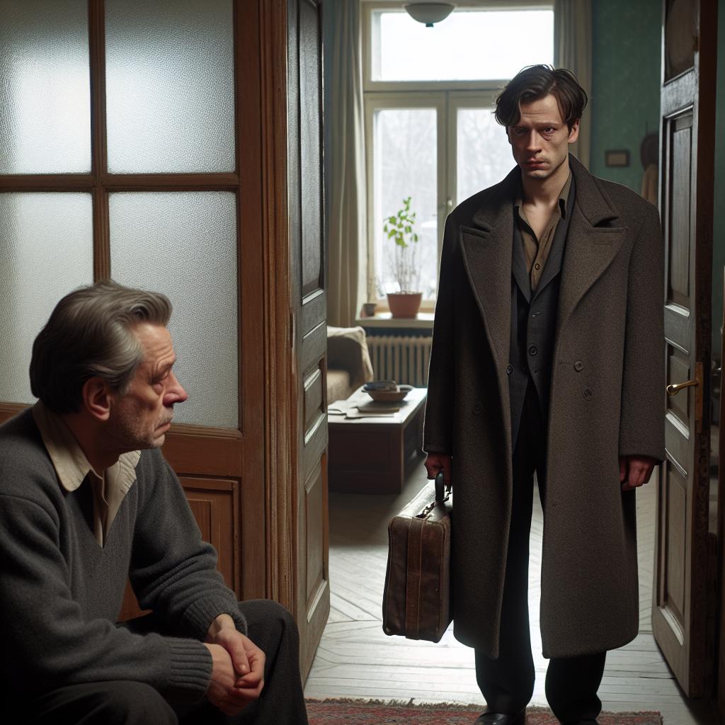 На пороге стоял неуверенный мужчина в лёгком плаще, совсем не по погоде. Он крепко прижимал к груди потёртый портфель.