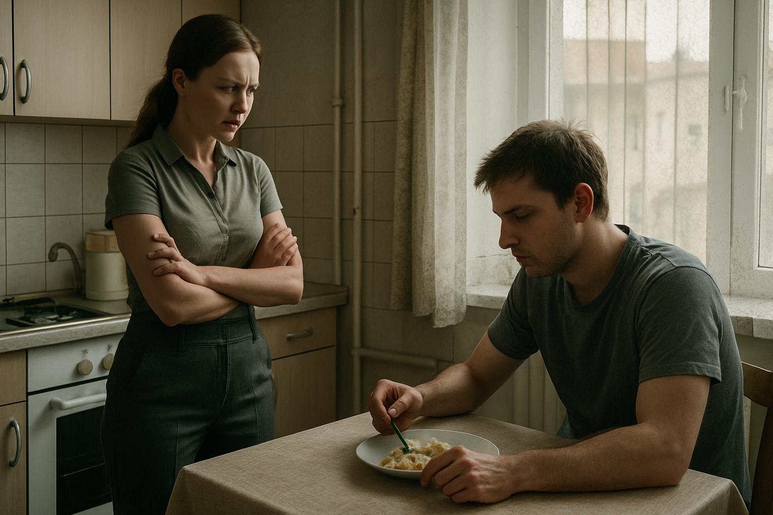 Богдан медленно опустил вилку на тарелку. Звук металла о керамику в тесной кухне прозвучал непривычно громко. Он посмотрел на Любу исподлобья — во взгляде читались усталость и знакомое стремление любой ценой избежать ссоры.