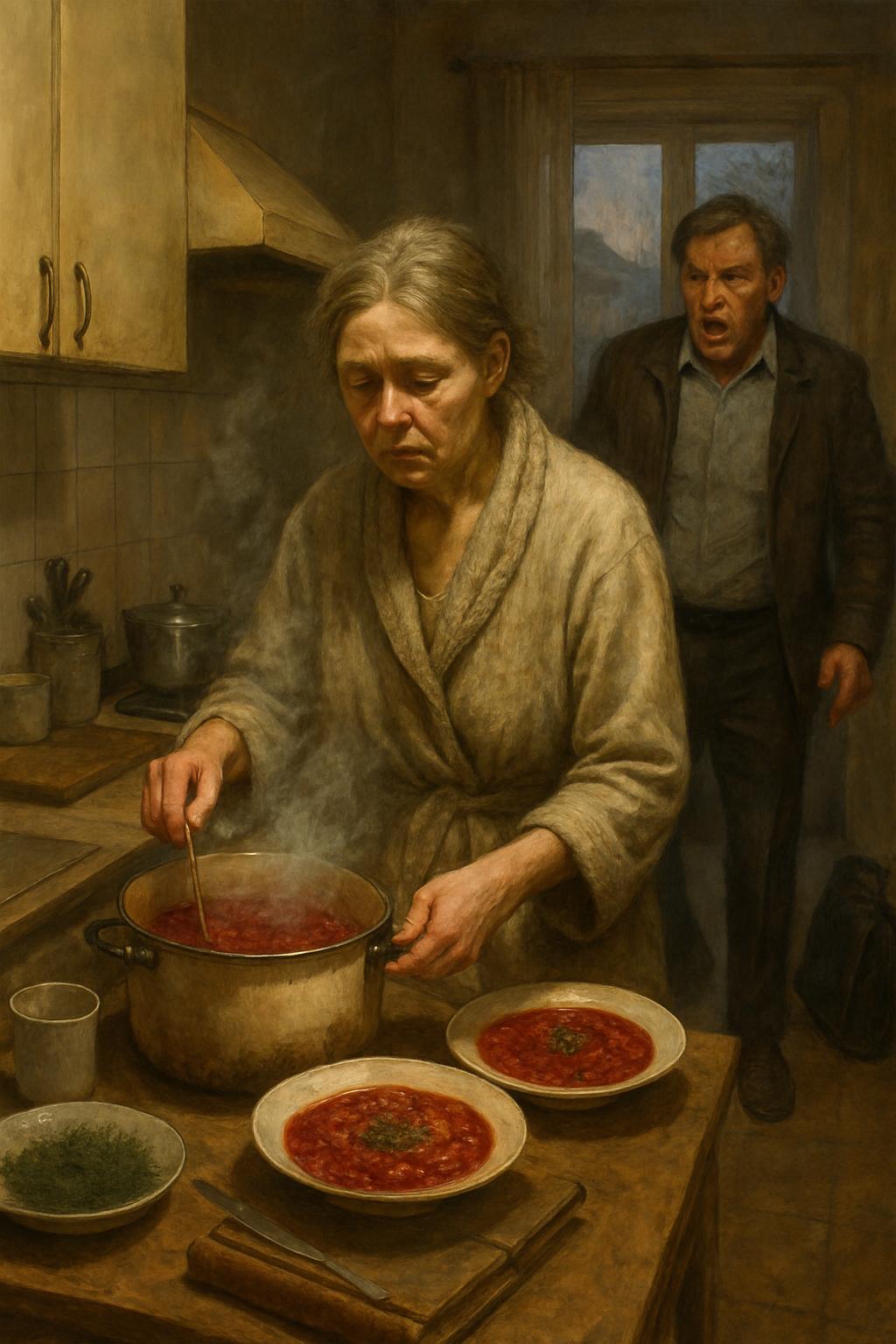 Дверь захлопнулась с такой силой, что в прихожей качнулась вешалка. Ганна не обернулась — продолжала разливать по тарелкам густой борщ насыщенного бордового цвета, от которого по кухне стлался пар с ароматом укропа. Она уже знала, что будет дальше. Поняла это по тому, как он ворвался в квартиру, не разуваясь. По тому, как бросил портфель где попало.