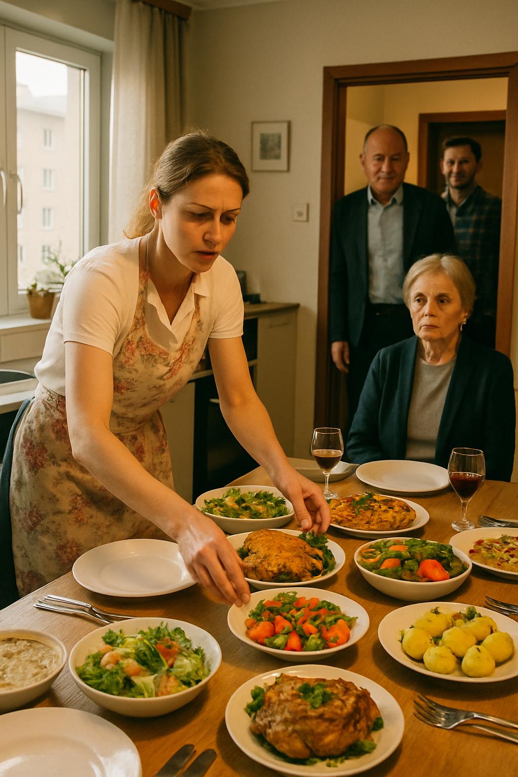 Оксана вошла первой. Поздоровалась, окинула взглядом прихожую, затем прошла на кухню. Медленно осмотрела стол — от одного края до другого. Ни слова.