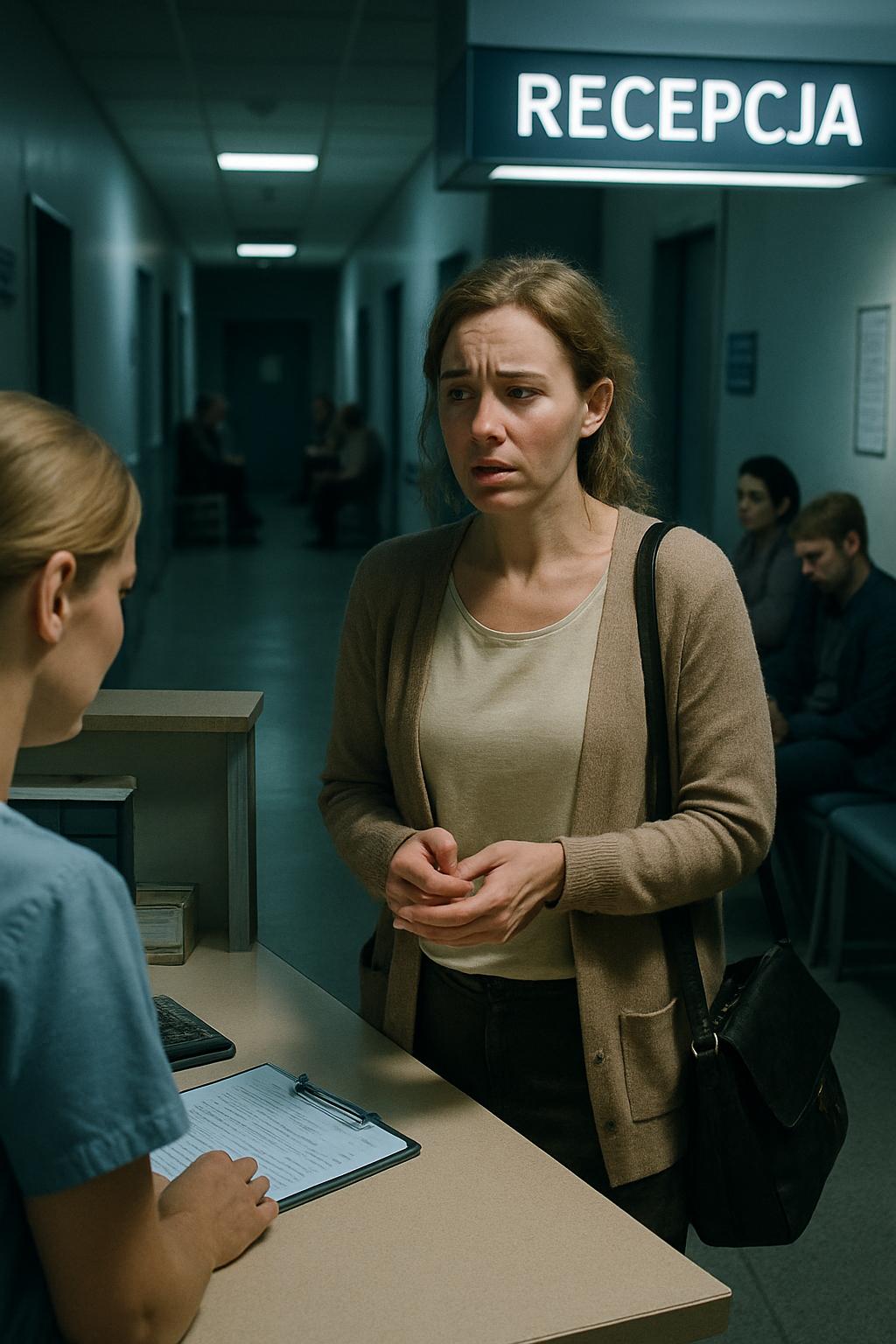 Приёмное отделение. Люди сидят на скамейках, кто-то молчит, кто-то шепчется.