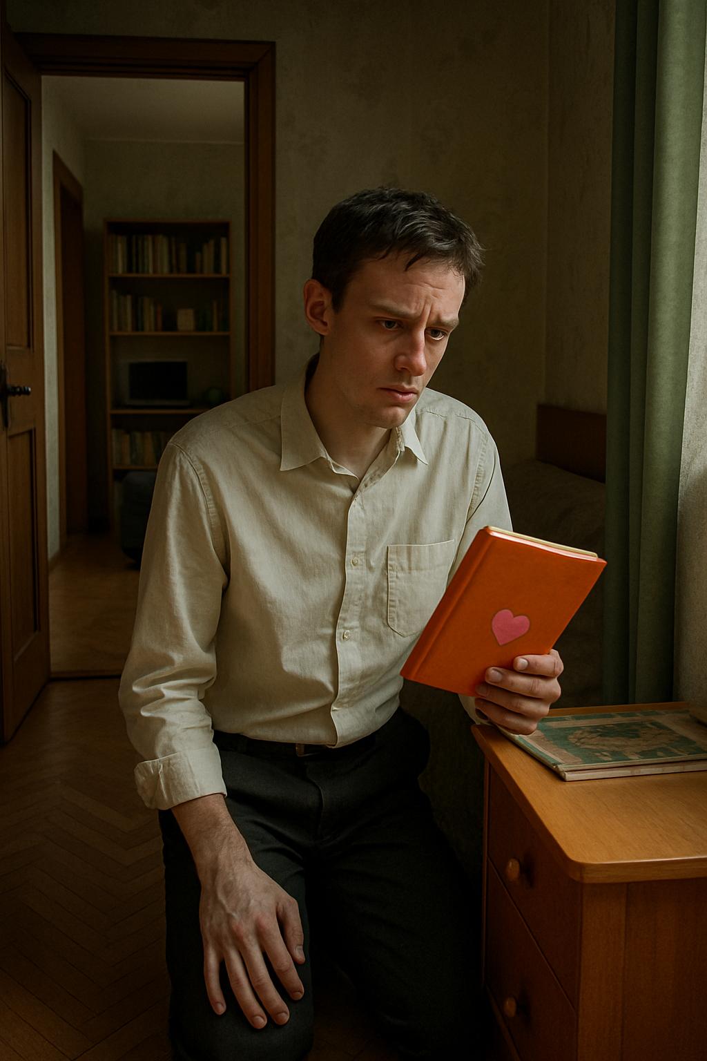 Он прошёл в спальню и машинально включил свет. Воздух наполнился тонким ароматом её духов — цветочный запах с лёгкой горчинкой всегда вызывал у него тепло внутри. Его взгляд остановился на тумбочке с её стороны кровати: из-под стопки журналов выглядывал уголок яркой тетради. Почти не осознавая своих действий, Богдан опустился на колени и осторожно выдвинул ящик тумбочки. Там лежала та самая тетрадь. Он сразу узнал наклейку на внутренней стороне обложки — маленькое сердечко с надписью «Memento vivere» — «помни жить».