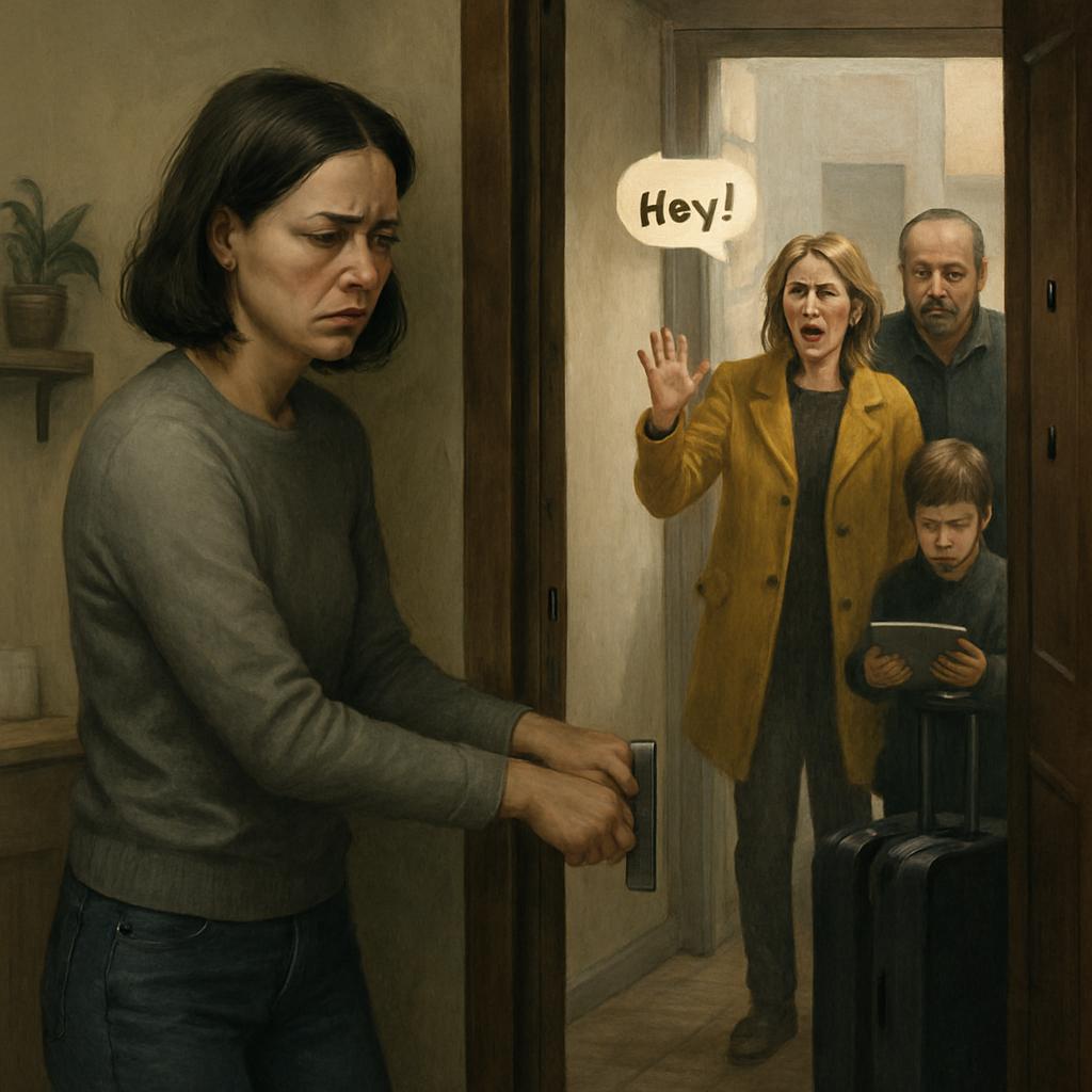Елена насторожилась, услышав звонок в дверь. Максим был на работе, и гостей они не ждали. Заглянув в глазок, она узнала фигуру — это была Ярина, сестра мужа, с багажом. Рядом стоял её молчаливый супруг Богдан, а между ними — их пятилетний Назар с планшетом в руках.