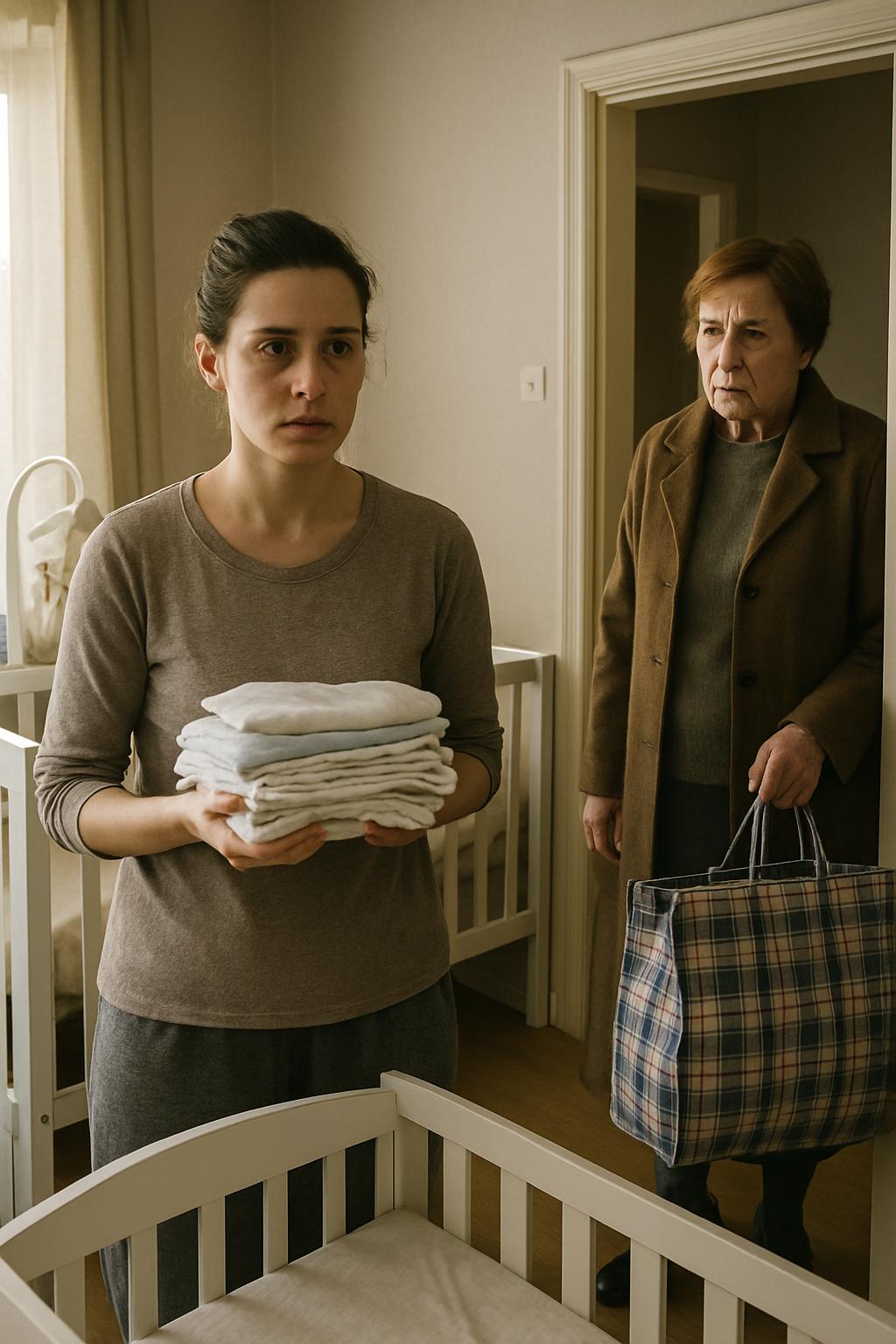 Оксана вздрогнула и едва не выронила аккуратно сложенную стопку выглаженных пеленок. Повернувшись, она увидела свекровь в дверях детской. В руках та держала объемную клетчатую сумку — такую, с какими в девяностые ездили на базары. Именно с такой Кирилл когда-то привозил картошку с дачи.
