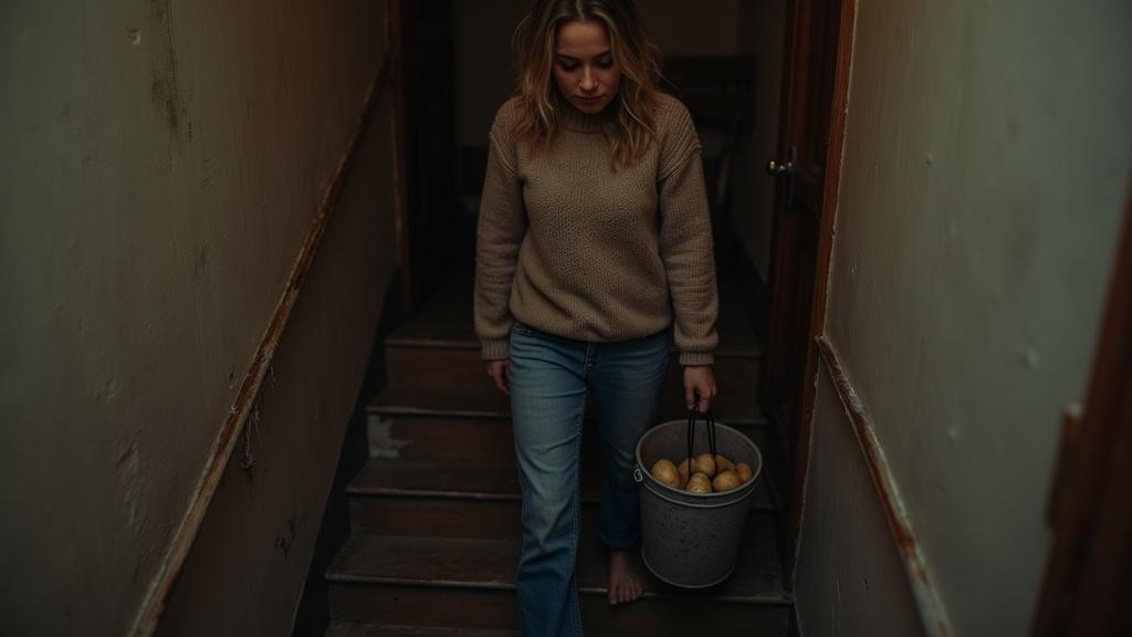 Леся поднималась по скрипучим ступеням крыльца, неся ведро с картошкой.