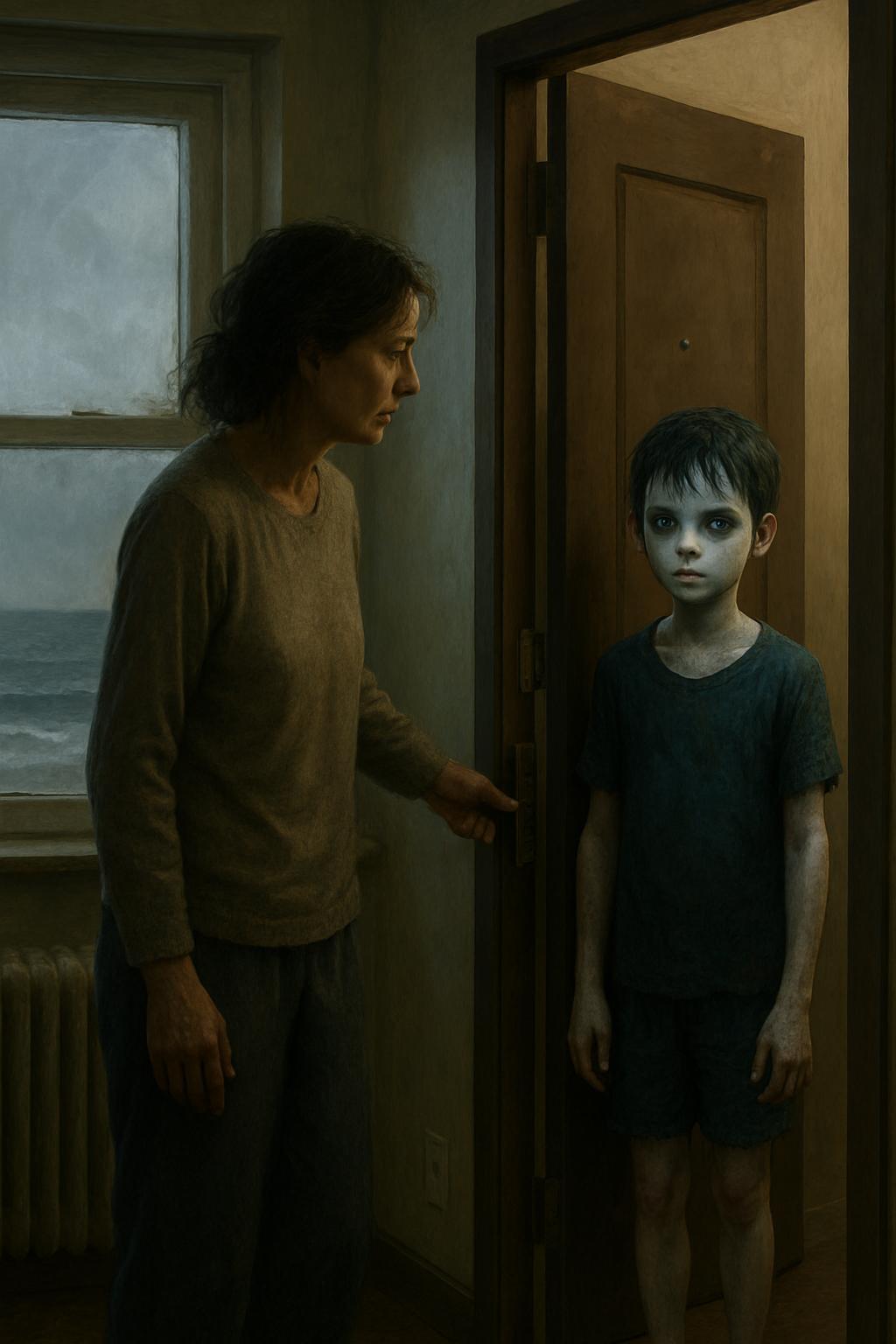 Оксана отпрянула назад. Горло сжалось от внезапного спазма, воздух стал густым и тяжёлым — словно морская вода проникла внутрь дома. Она застыла на месте, не в силах отвести глаз от ребёнка.