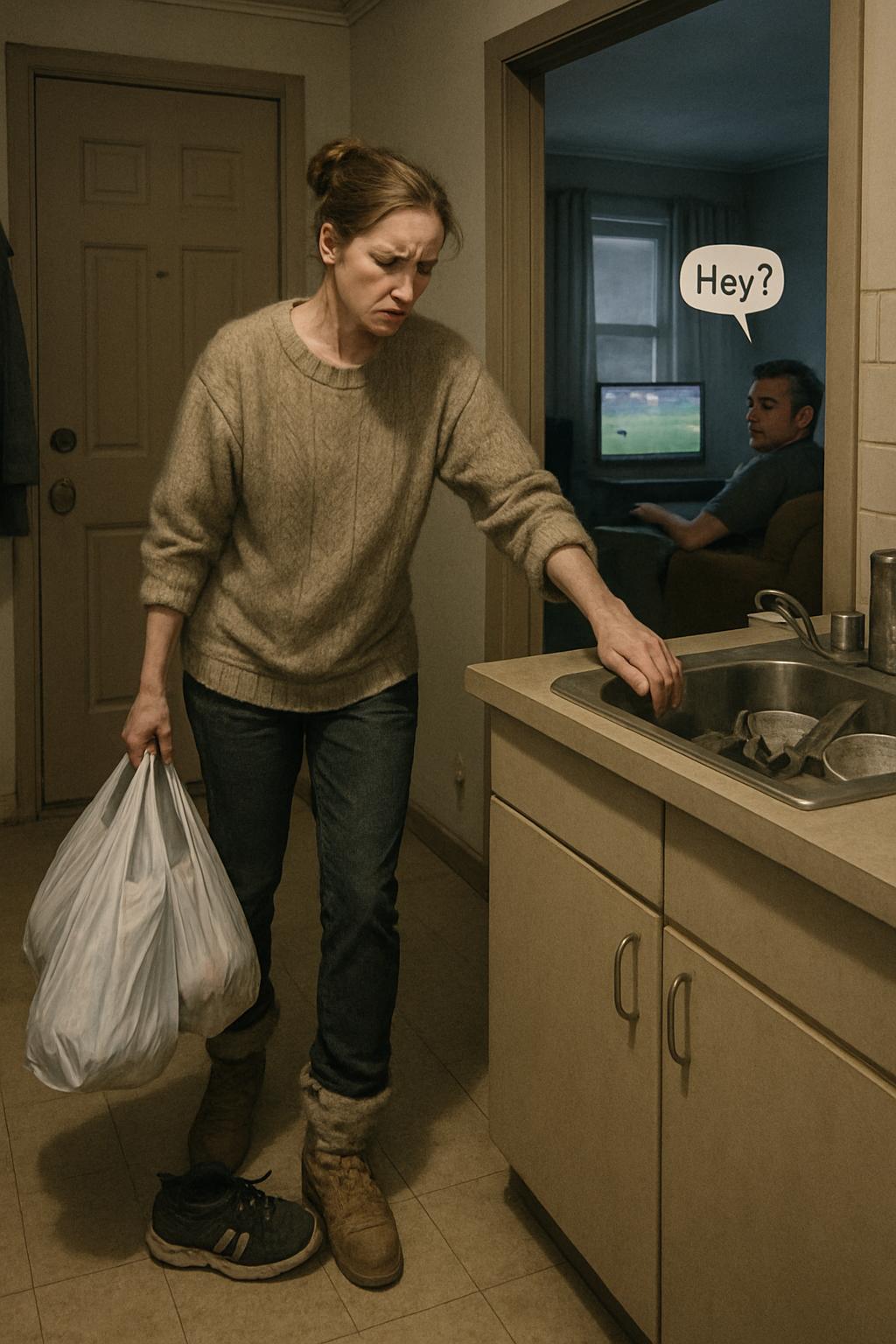 Из гостиной раздавался оживлённый голос спортивного комментатора — по телевизору шёл футбольный матч. Мария направилась на кухню, опустила пакеты на столешницу и, тяжело вздохнув, опёрлась на неё ладонями.