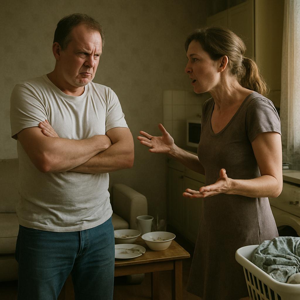 — Без всяких чего?! — перебила мужа Оксана. — Без учёта площади квартиры? Без уважения к мнению жены? Или без понимания того, что я тут никому не нанималась стирать и кормить трёх взрослых мужиков? Объясни!