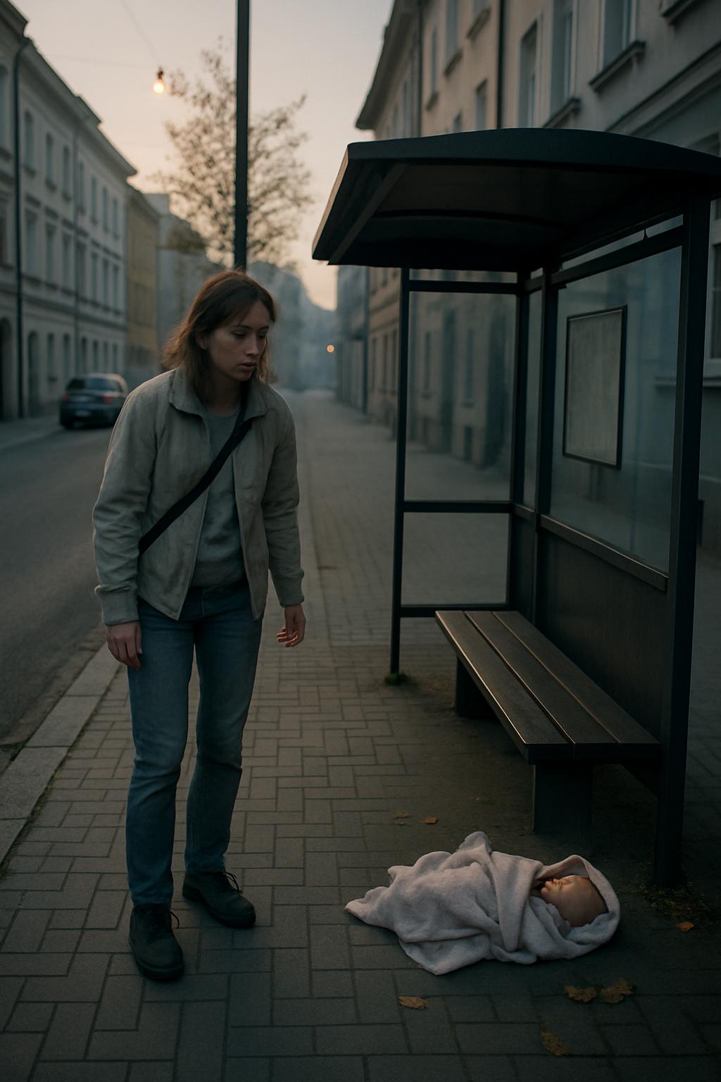 Сначала мне показалось: кто-то оставил свёрток белья или старую одежду. Но когда я подошла ближе, заметила движение внутри ткани — крошечный кулачок едва заметно дёрнулся из-под одеяла. У меня перехватило дыхание.