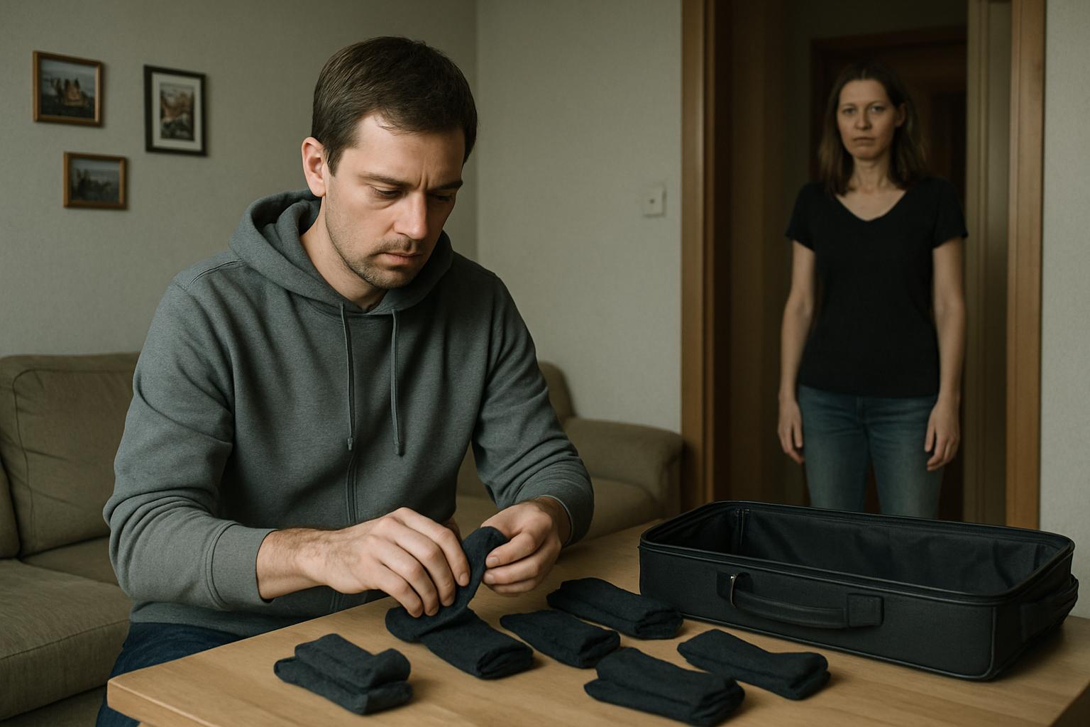 Когда Михайло складывал вещи в синий спортивный баул — тот самый, что я вручила ему восемь лет назад на тридцатилетие, — я стояла в дверях спальни и почему‑то думала лишь об одном: откуда у него столько носков.