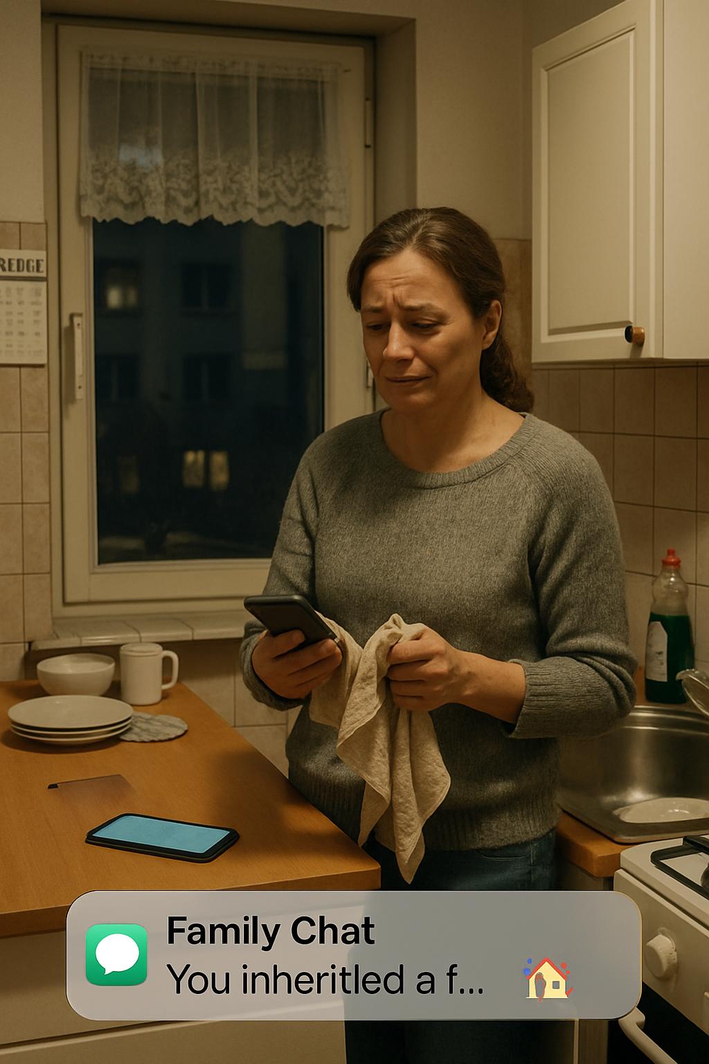 Телефон завибрировал на столешнице — сначала один раз, затем второй и ещё несколько. Она вытерла руки полотенцем и взяла трубку.