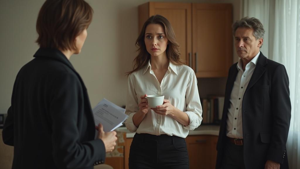 Дарина застыла, не донеся чашку кофе до губ. В центре гостиной стояла её свекровь с каким-то документом в руках, а рядом переминался с ноги на ногу незнакомец в деловом костюме.