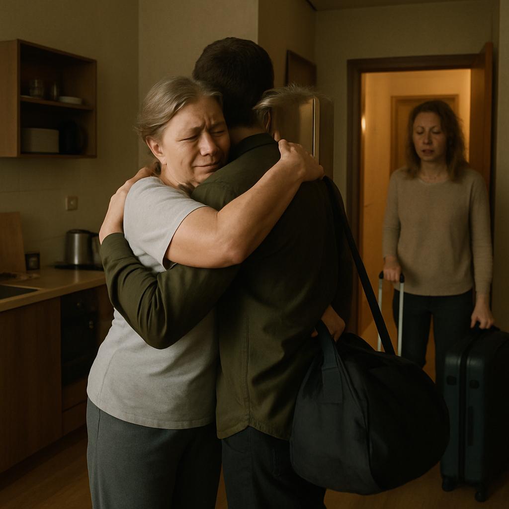 Я прижалась к сыну, вдыхая знакомый аромат его одеколона. За его спиной стояла Анастасия с двумя чемоданами, бледная от усталости. Уже третий день они безуспешно пытались найти новое жильё после того, как хозяйка их квартиры решила передать её родственникам.