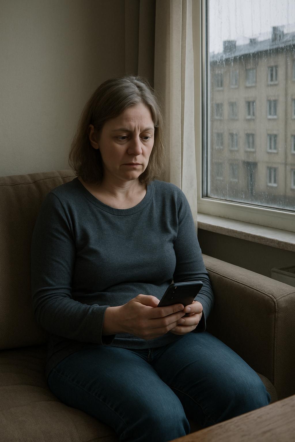 Наталья, ухоженная женщина сорока трёх лет с неизменной тенью одиночества во взгляде, устроилась на диване и бездумно листала экран смартфона. За окном моросил затяжной октябрьский дождь, и струйки воды, ползущие по стеклу, размывали контуры пятиэтажек напротив, превращая их в серые, расплывшиеся пятна.