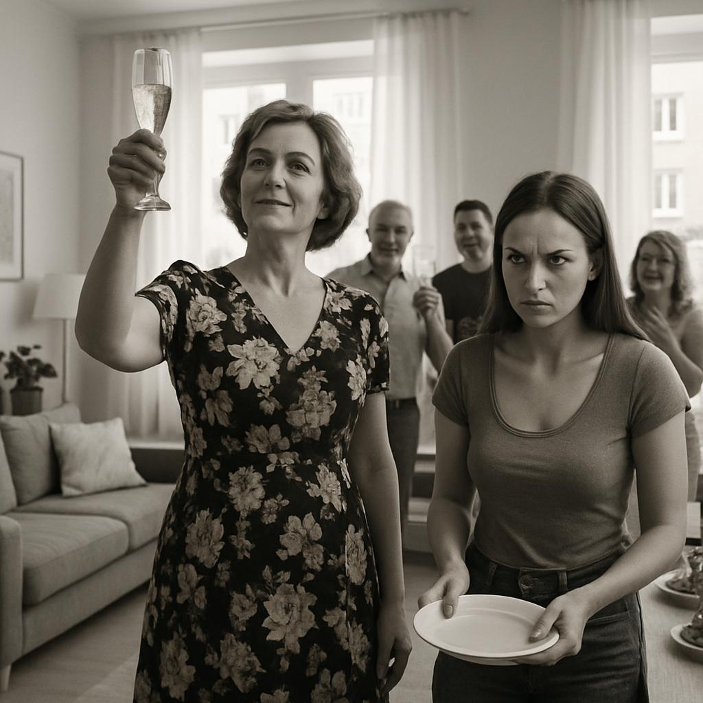 Оксана застыла у стола с посудой. Её пальцы сжали тарелку так крепко, что та заскрипела от напряжения. Медленно повернувшись, она взглянула на свекровь. Та сияла в окружении родственников и соседей, собравшихся отпраздновать новоселье. На лице — привычная широкая улыбка, за которой скрывалось холодное удовлетворение.