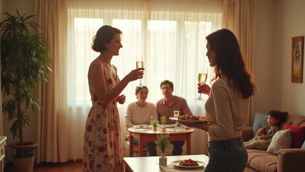 Оксана застыла у стола с посудой. Её пальцы сжали тарелку так крепко, что та заскрипела от напряжения. Медленно повернувшись, она взглянула на свекровь. Та сияла в окружении родственников и соседей, собравшихся отпраздновать новоселье. На лице — привычная широкая улыбка, за которой скрывалось холодное удовлетворение.