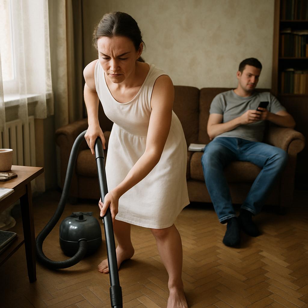 Богдан развалился на диване с телефоном в руках; Оксана пылесосила квартиру сама — стиснув зубы от злости и обиды. Где-то внутри копилось раздражение тяжёлым грузом… но она старалась держать себя в руках и внушала себе: «Всё наладится».