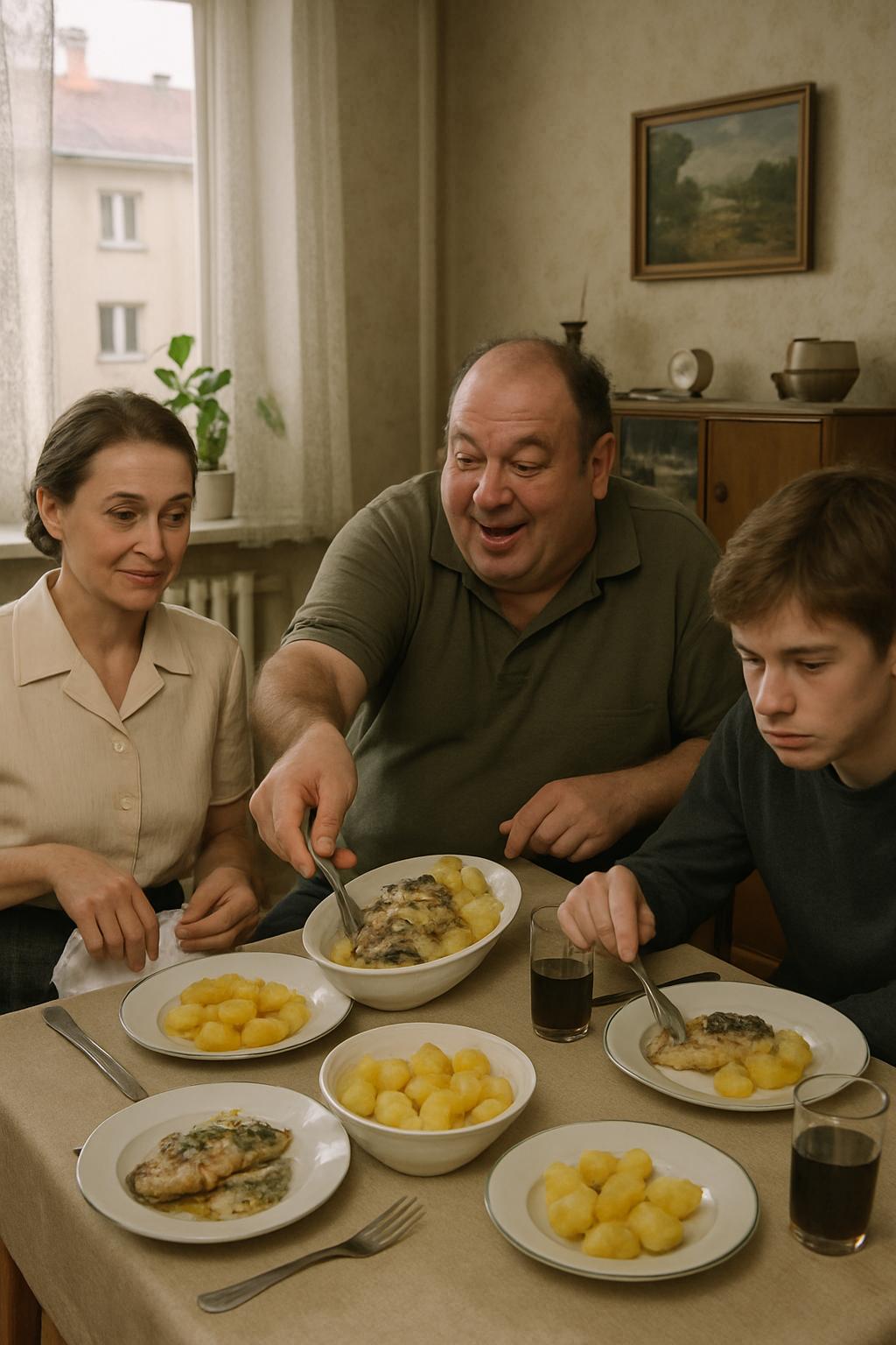 Галина согласно закивала и прищурилась. Татьяне она казалась чрезмерно суетливой и уж слишком хитрой женщиной. Та сидела рядом со своей дочерью Еленой и то и дело гладила её по руке — будто проверяя: всё ли в порядке. Дмитрий, сын Татьяны, устроился напротив; он выглядел непривычно тихим и сосредоточенно ковырял вилкой котлету, избегая смотреть матери в глаза. Это был тревожный сигнал: он всегда так себя вел либо когда чувствовал вину, либо если его втягивали во что-то сомнительное.