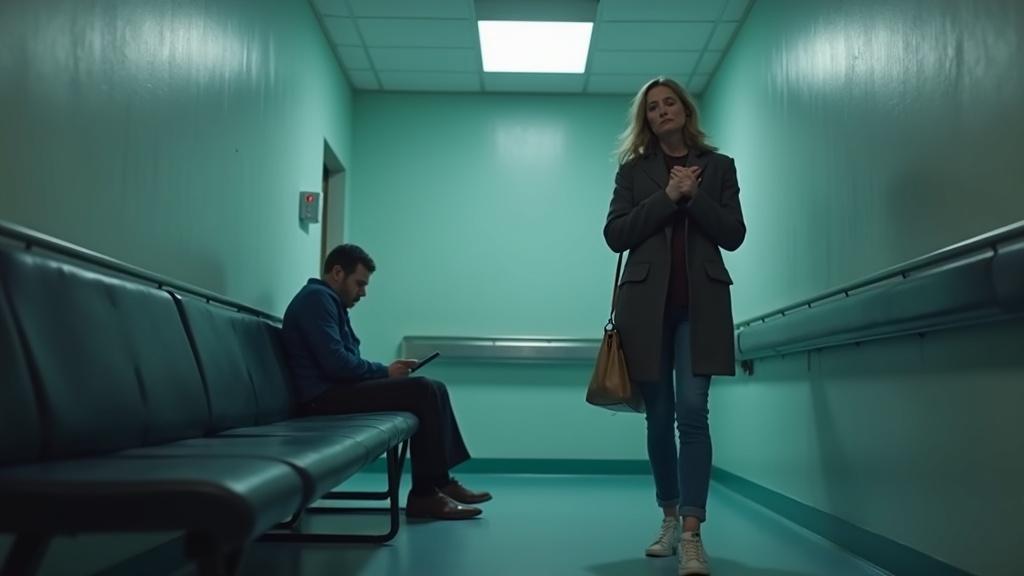 Приёмное отделение. Коридор. Люди сидят на лавках, кто-то молчит, кто-то шепчется.