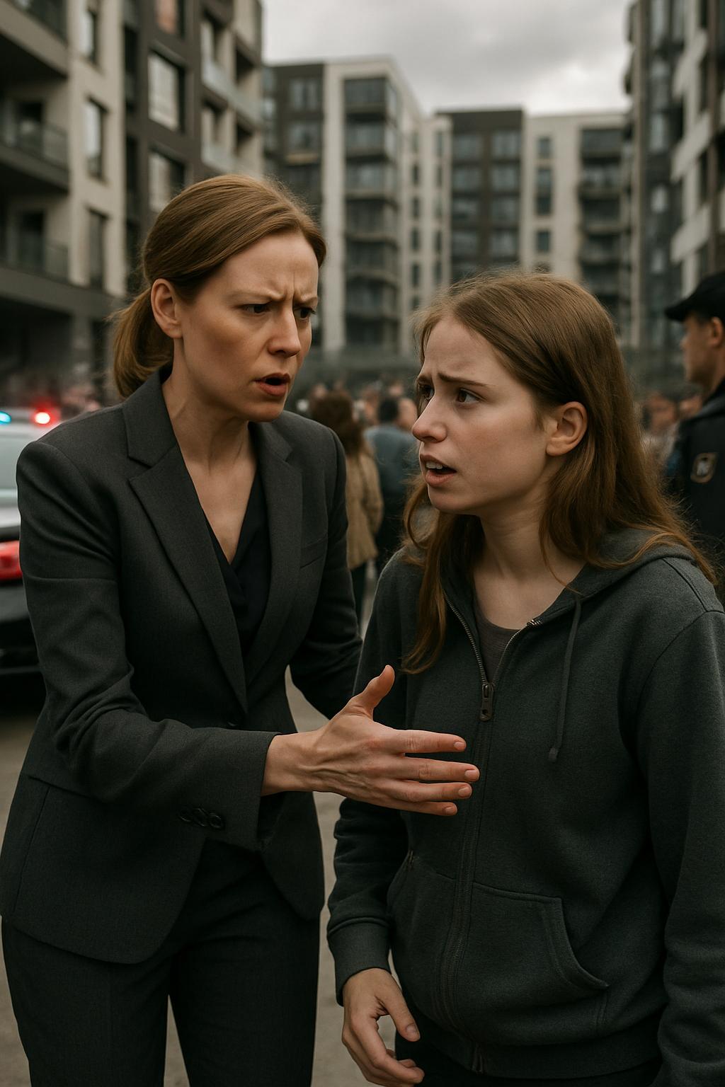 Лицо Екатерины омрачилось. Она сразу почувствовала: эта суматоха имеет к ней прямое отношение. Женщина велела Мирону остановиться неподалёку от входа и вышла из машины. Направившись к домам, она заметила скопление людей во дворе — кто-то снимал происходящее на телефон. Протискиваясь сквозь толпу зевак, Екатерина ощущала нарастающее беспокойство.