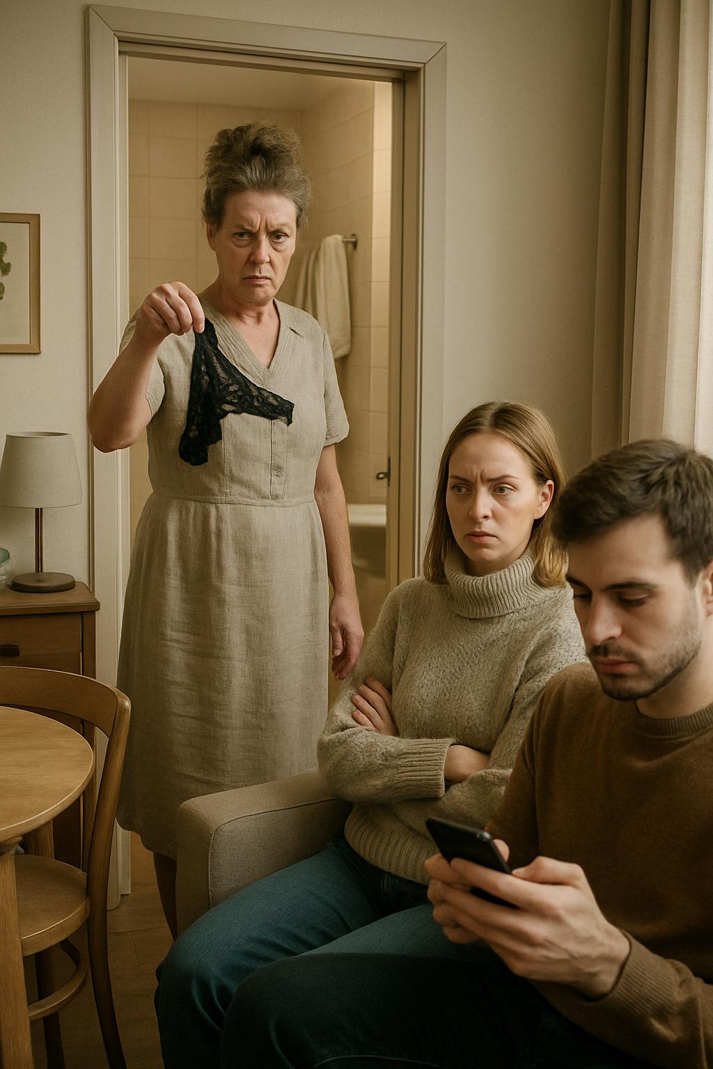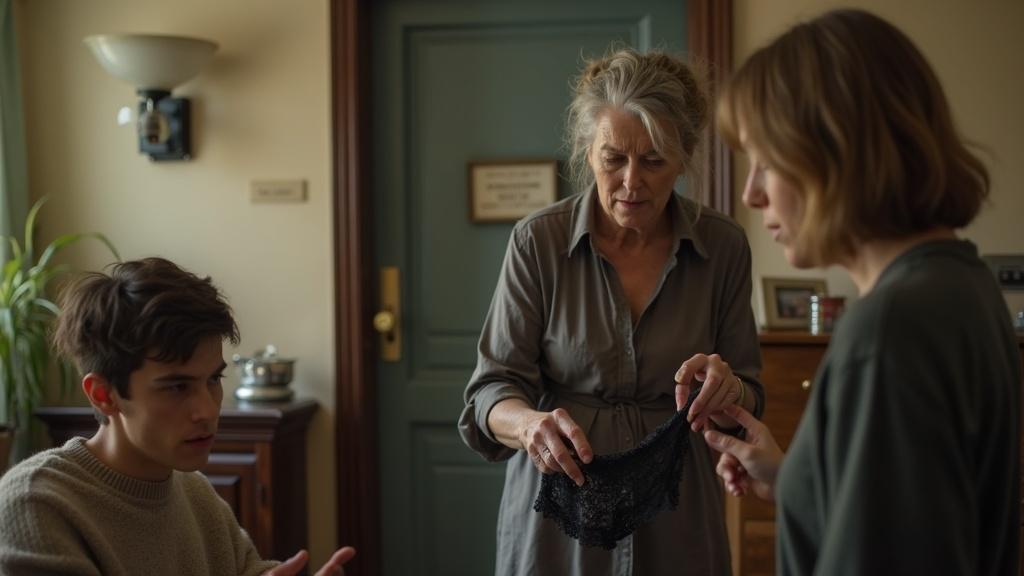На пороге возникла она — торжественная и непреклонная, словно стихийное бедствие. Двумя пальцами Галина брезгливо держала мои чёрные кружевные трусики, глядя на них так, будто перед ней было что‑то непристойное и опасное.