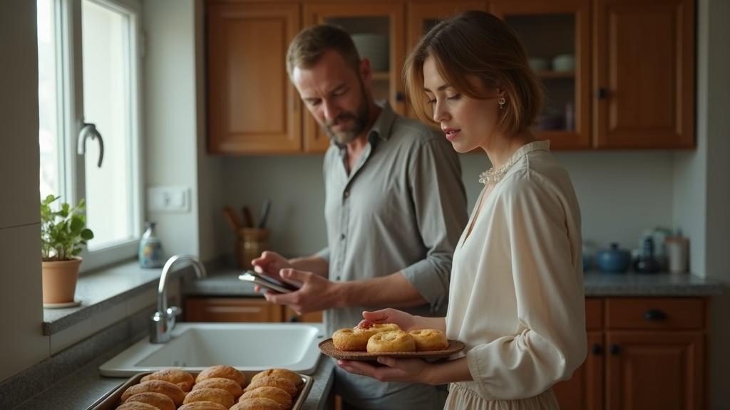 Дарина застыла с горячим противнем в руках. Это был не её телефон — он принадлежал Михайлу Мазуру, её супругу, с которым она прожила бок о бок двенадцать лет. Двенадцать лет доверия и уверенности… Она машинально поставила пирог на стол и дрожащими пальцами потянулась к устройству.