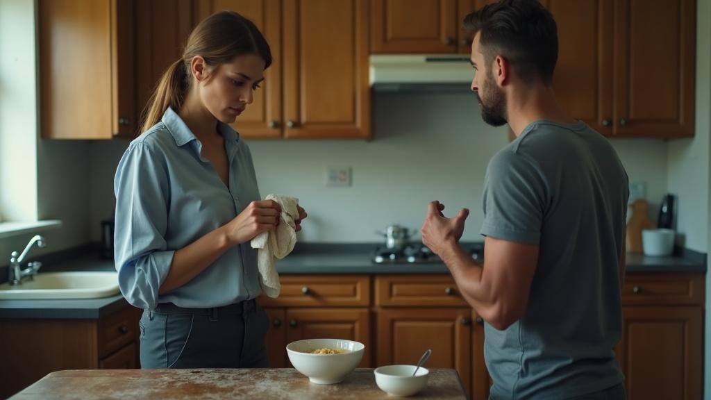 Из рук Марии выпала ложка и с глухим чавкающим звуком упала в недоеденную кашу дочери. Девочка тут же отреагировала: губы скривились, брови сошлись к переносице, из горла вырвался недовольный звук. Не сводя взгляда с мужа, Мария потянулась за салфеткой и аккуратно вытерла подбородок ребёнка.